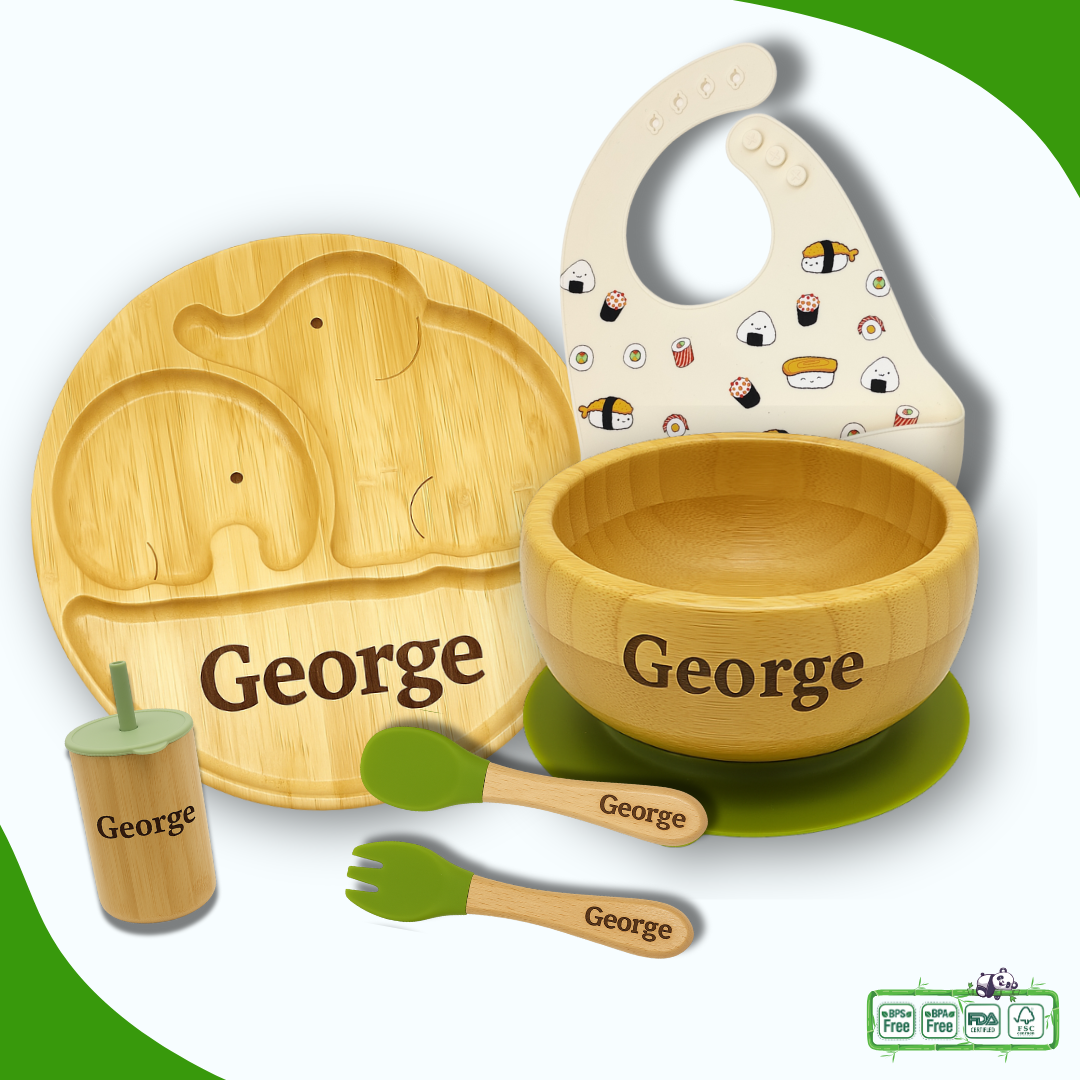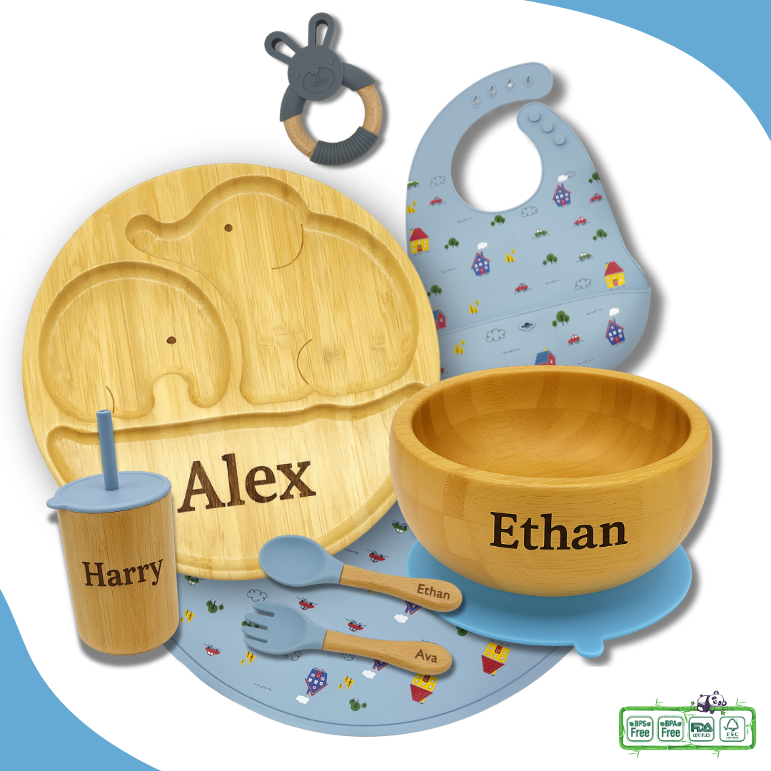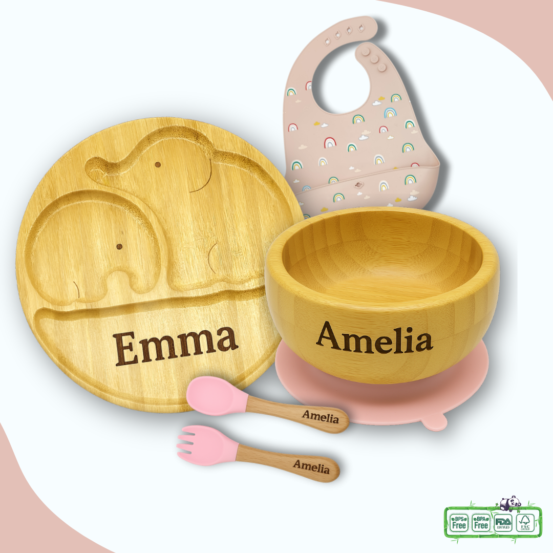 Designed with love and crafted from eco-friendly materials, this set makes your little one’s first bites safer, happier, and more personal. Each bamboo piece can be engraved with your child’s name – completely FREE of charge – making it a truly special keepsake. 🐘