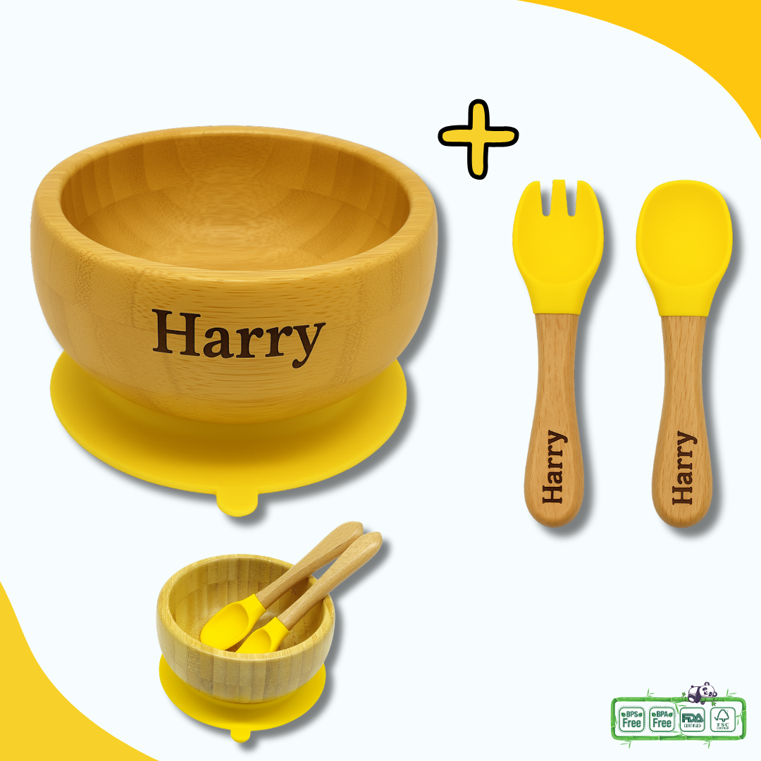Personalized Bamboo Baby Bowl ‘Sweet Joy’ with Spoon & Fork